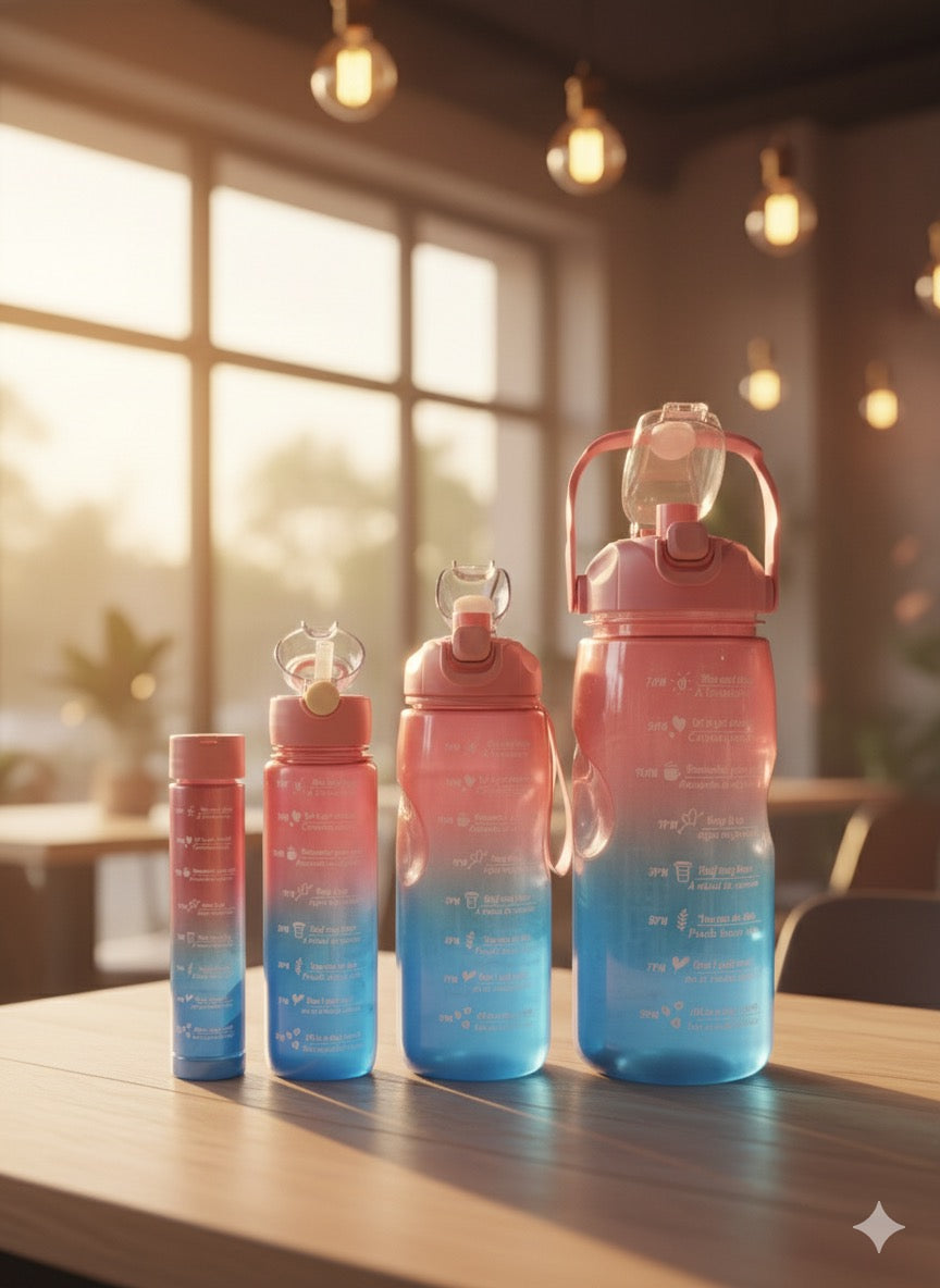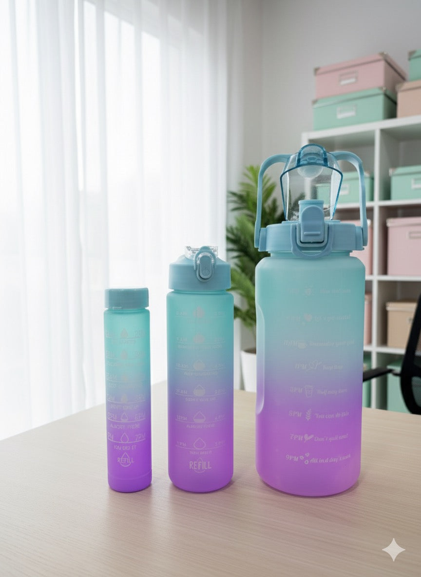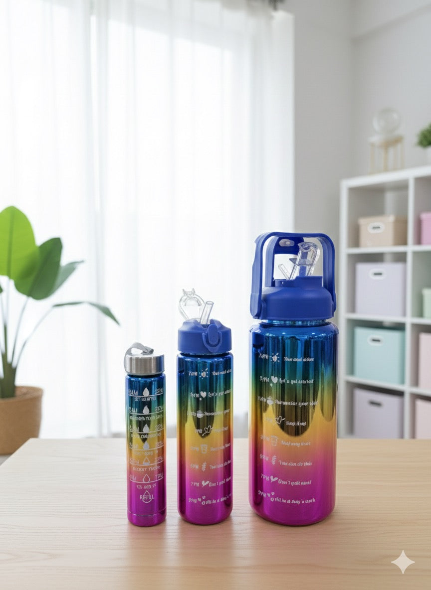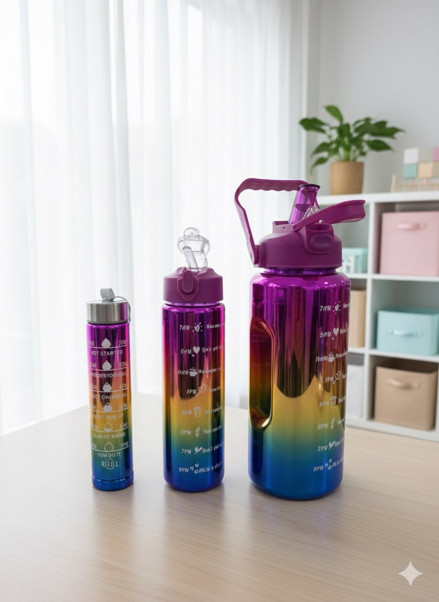 3 Pieces Set Electroplated Gradient Sports Bottle
