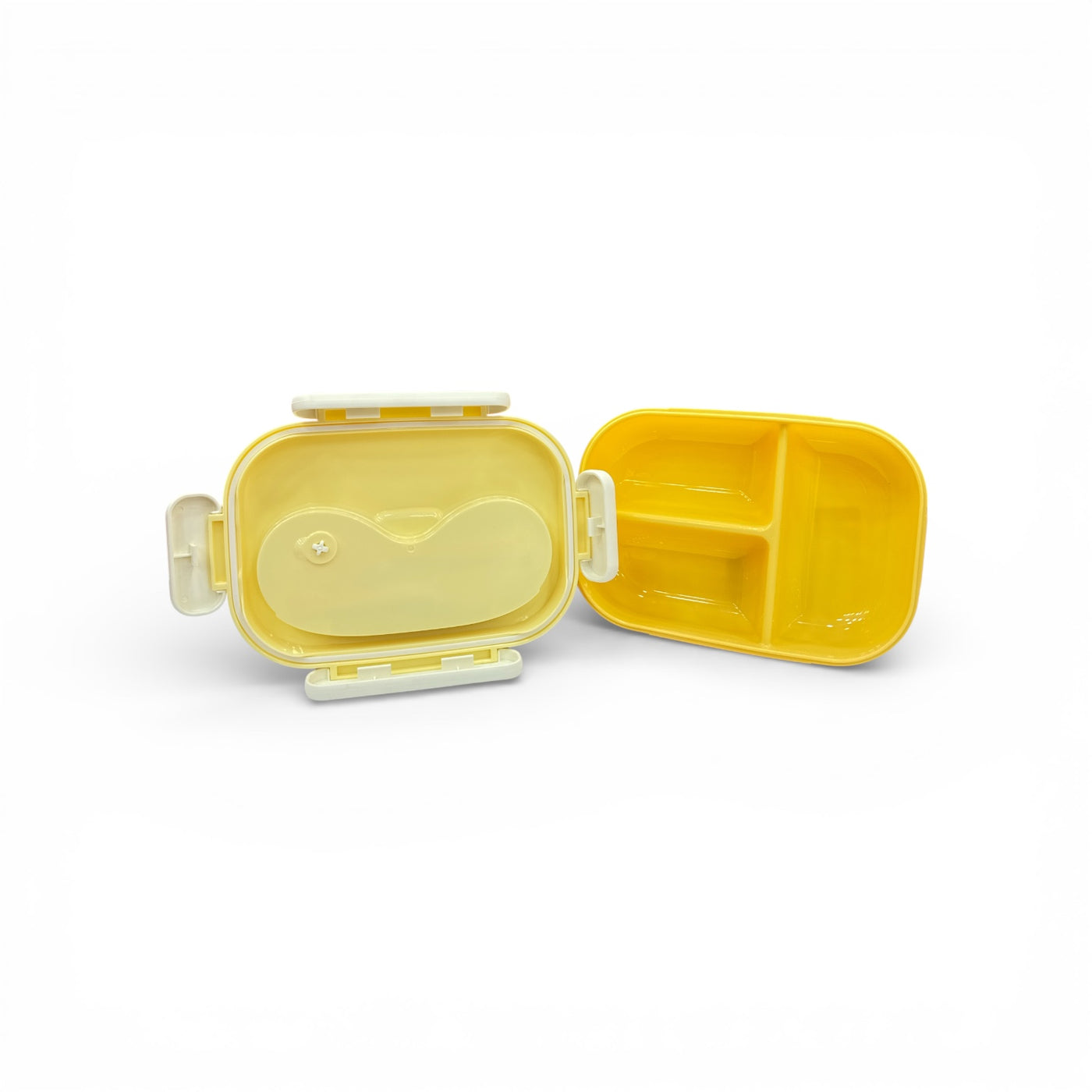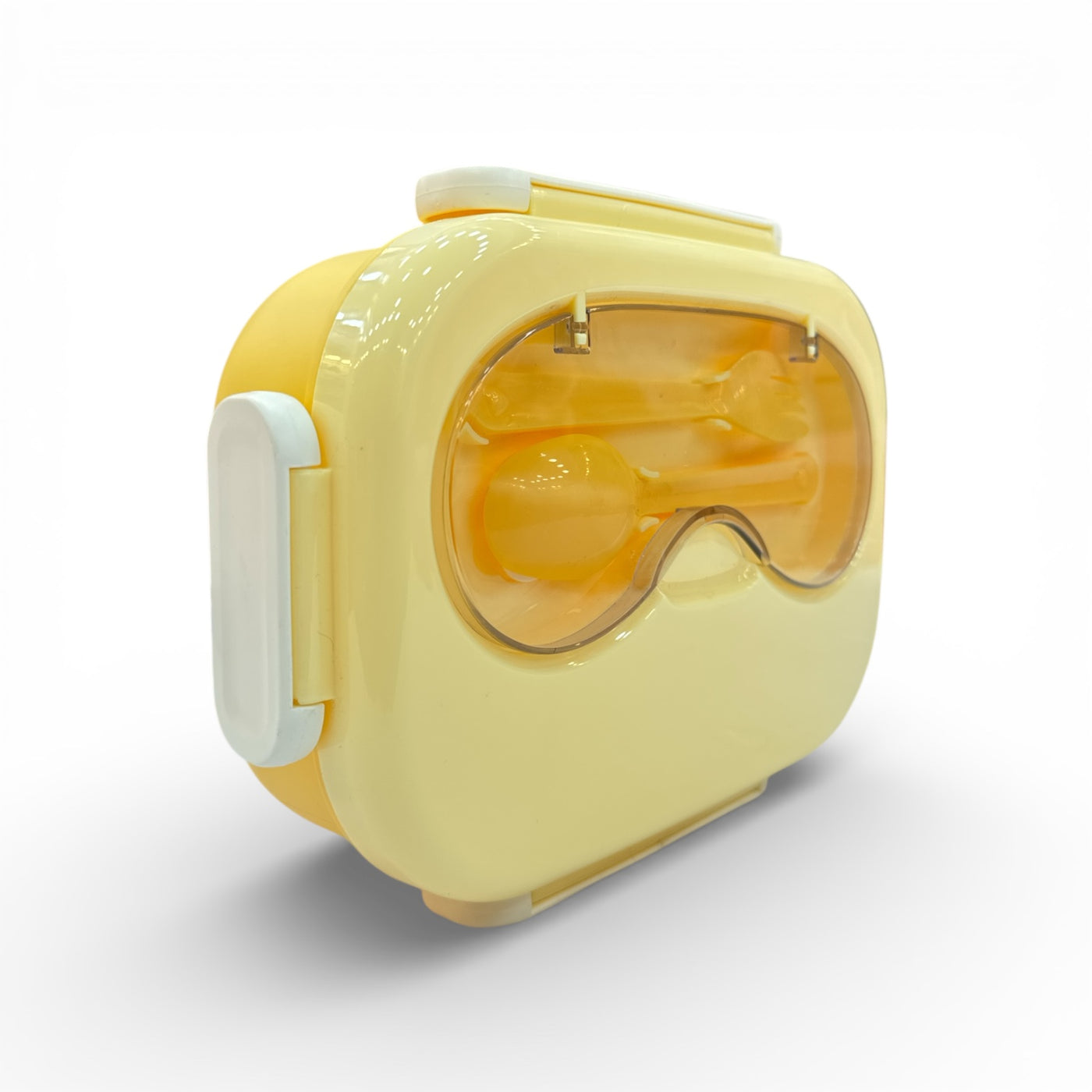 Make mealtime simple and stylish with this practical yellow lunchbox. Designed with a transparent lid that neatly stores a matching spoon and fork, it’s perfect for kids, school lunches, or travel. The secure side clasps keep food fresh and spill-free, while the lightweight, durable build ensures easy carrying. Its cheerful color and smart design make it both functional and fun for everyday use.